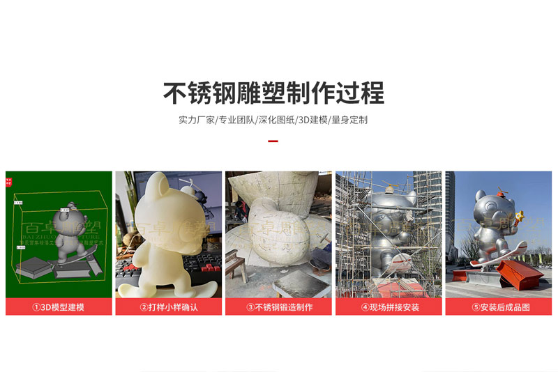 1、不銹鋼:不銹耐酸鋼簡稱不銹鋼,它是由不銹鋼和耐酸鋼兩大部分組成的,簡言之,能抵抗大氣腐蝕的鋼叫不銹鋼,而能抵抗化學介質腐蝕的鋼叫耐酸鋼。由于不銹鋼有諸多的優越性,因此,很多的城市雕塑都是以它為材料。不銹鋼要求雕塑本身簡潔大方,形體感明顯,且光影效果強烈,顏色的選擇性最大。