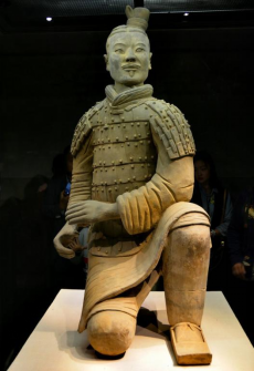 在中國西安秦始皇陵中,出土了大量做工精致的兵馬俑雕塑,這些雕塑作品向世界展示出中國古典雕塑的工藝,同事,也記錄了一個宏偉的帝國盛況。被譽為“世界八大奇跡。”