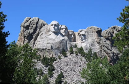 拉什莫爾國家紀念碑,包括了美國歷史上四位功勛卓著的總統的頭像,他們分別是喬治·華盛頓,托馬斯·杰弗遜,西奧多·羅斯福和亞伯拉罕·林肯。頭像的雕刻采用了高浮雕寫實的手法,突嵌在高大的山峰上。每尊頭像的高度約為18米,總面積約為20平方米,其中鼻子長度約7米,嘴的寬度為2.6米,眼睛寬1.5米。他們目光前視,儀表莊嚴,代表著美國政績的四大象征:創建國家、政治哲學、擴張與保守和解放黑奴。