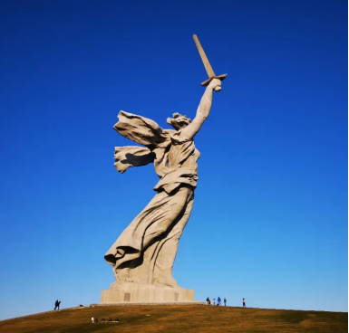 《祖國母親在召喚》紀念碑建于1967年,以紀念二戰期間著名的斯大林格勒保衛戰,紀念碑高85米,是伏爾加格勒的主要標志物,從城區、伏爾加河等不同地方都會遠遠看到該巨型雕像“母親”雕像高52米,她右手舉著一把長33米的利劍,左手呈現召喚姿勢,昂首挺胸,氣勢恢宏。該座紀念碑的總重量為8000噸,僅劍的重量就有14.6噸。