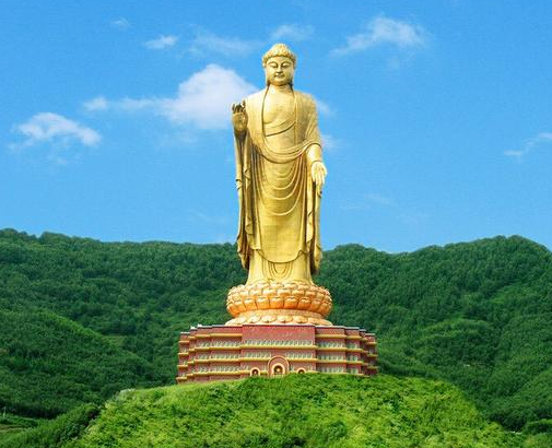 中原大佛,位于河南省平頂山市魯山縣趙村鄉上湯佛泉寺,是目前世界上最高的佛教造像。它由莆田興勝工藝、國家非物質文化遺產技藝傳承人、福建省工藝美術大師協會副會長林勝標大師于1997年設計制作。大佛總高208米,身高108米,蓮花座高20米,金剛座高25米,須彌座高55米。