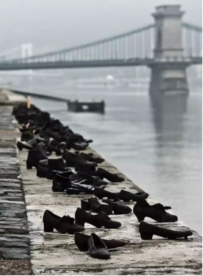 最后他們的身軀永葬長河,而鞋子依然留在岸邊,是他們活過的證據。兩位藝術家用鐵鞋來紀念這些不曾被人遺忘的猶太難民。